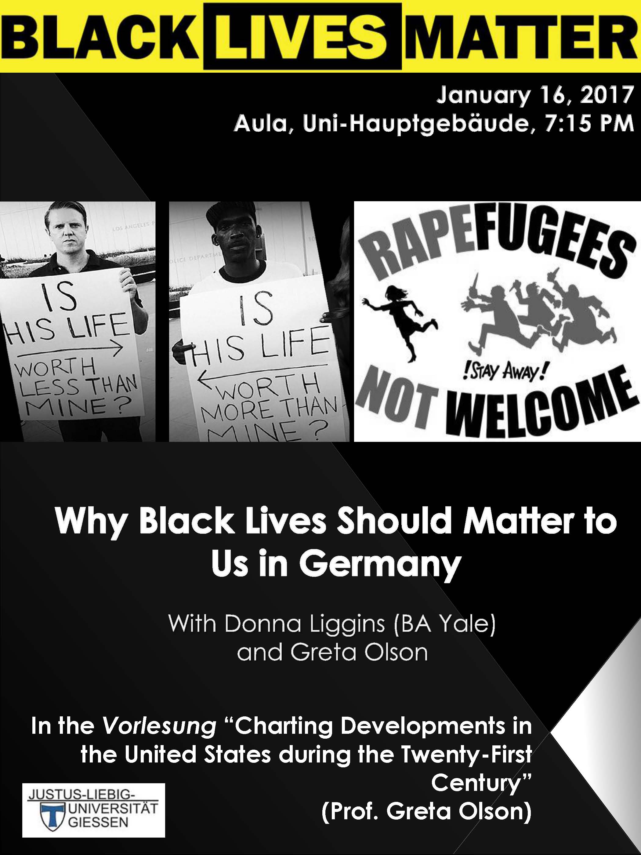 - Lecture with Donna Liggins and Greta Olson on “Why Black Lives Should Matter to Us in Germany” (January 16, 2017)