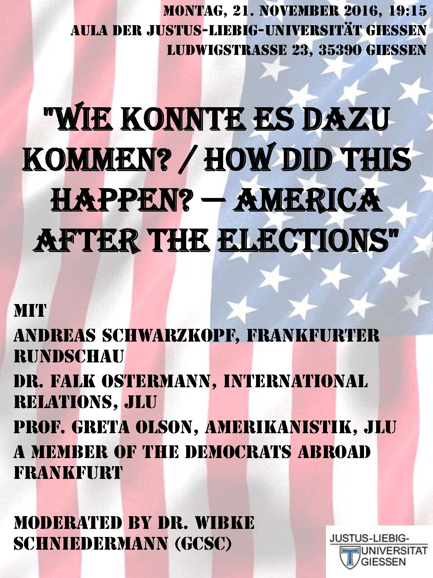- Podium Discussion on “Wie konnte es dazu kommen?/How did this happen? – America after the Elections” (November 21, 2016)