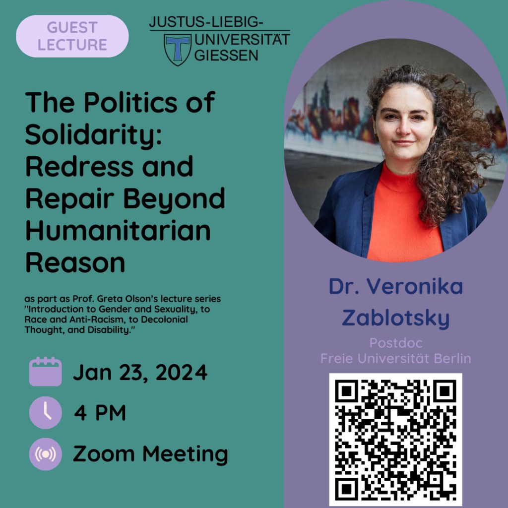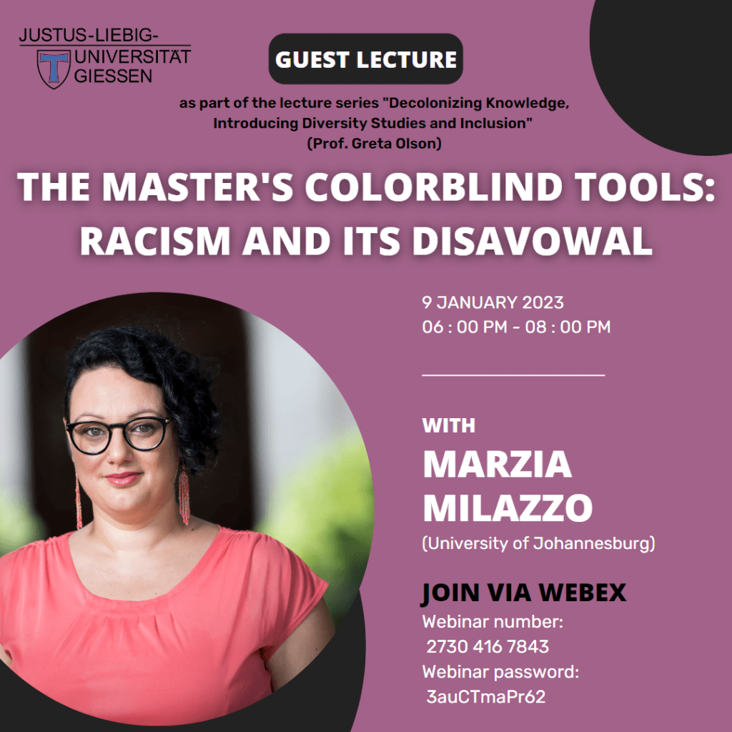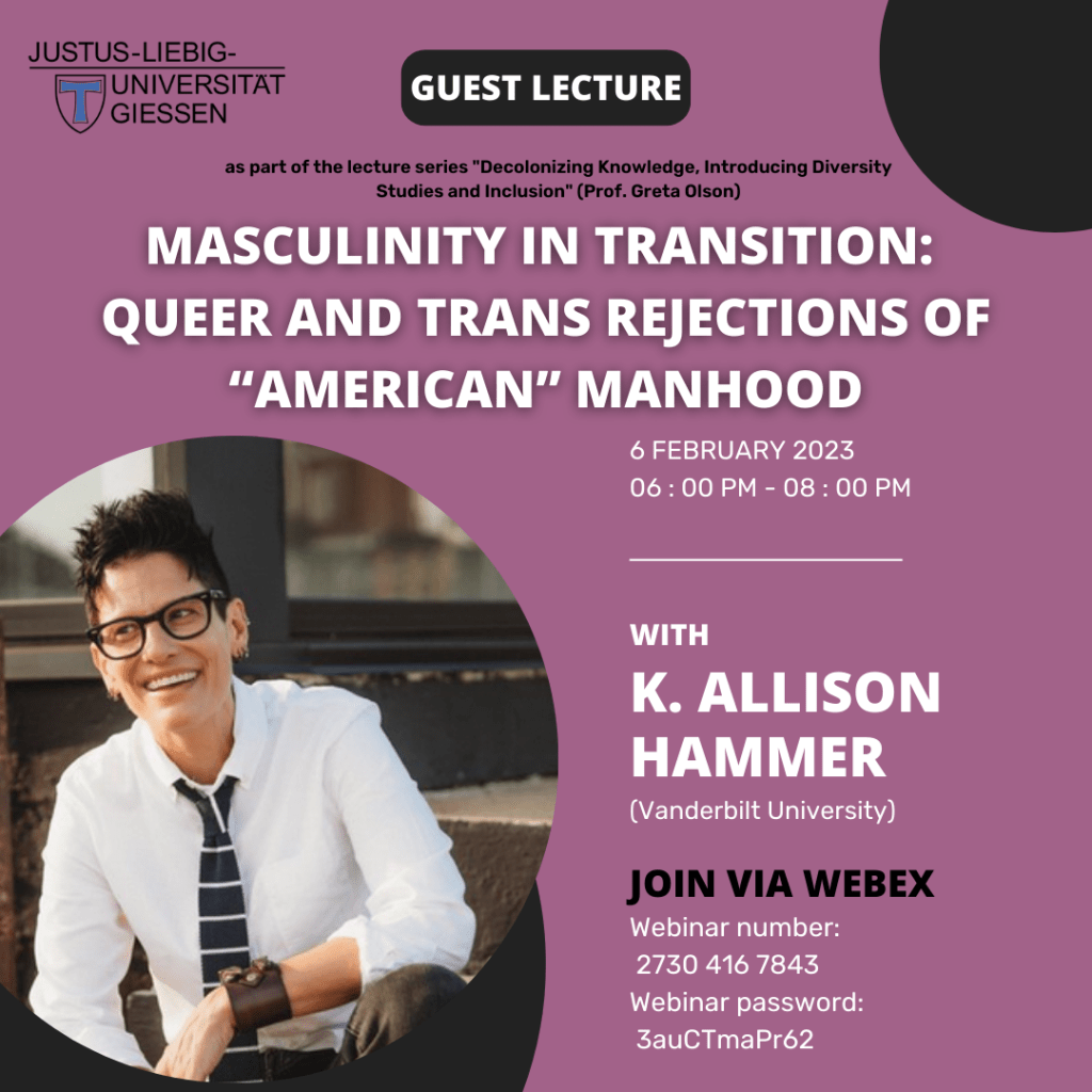 - Guest Lectures for the Lecture „‚Woman’/Feminisms/Queer/Trans and Nonbinary/Race/Nation/Ability – Decolonizing Knowledge, Introducing Diversity Studies and Inclusion“