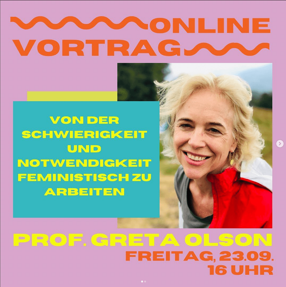 - “Von der Schwierigkeit und Notwendigkeit feministisch zu arbieten,“ Femme*Festival Giessen (21 September 2022), University of Giessen