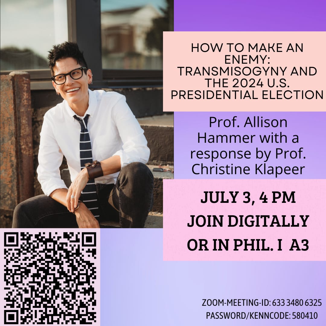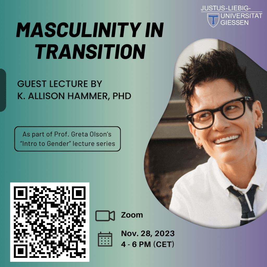 - Lecture Series on Gender: As part of the project Integrating Women’s and Gender Studies, six major scholars in women’s, masculinity, and gender studies will be speaking in Giessen this spring. They will describe their research and position their work within the context of making women’s, men’s, gender, and queer studies part of the university.
